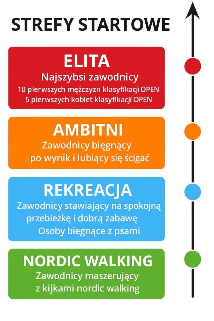 Aby każdy z uczestników mógł czuć się komfortowo od startu do mety i by mógł osiągnąć przy tym założone cele, postanowiliśmy wprowadzić strefy startowe.